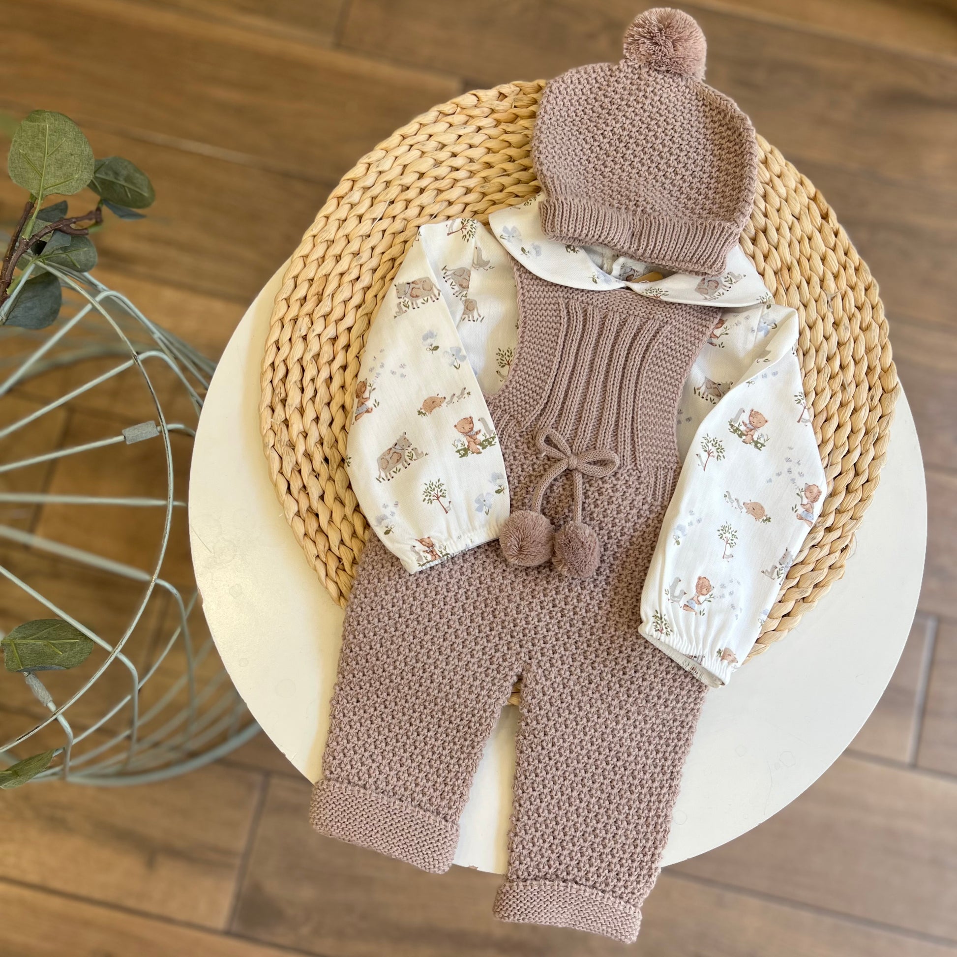 Composizione salopette e cappellino 100% acrilico