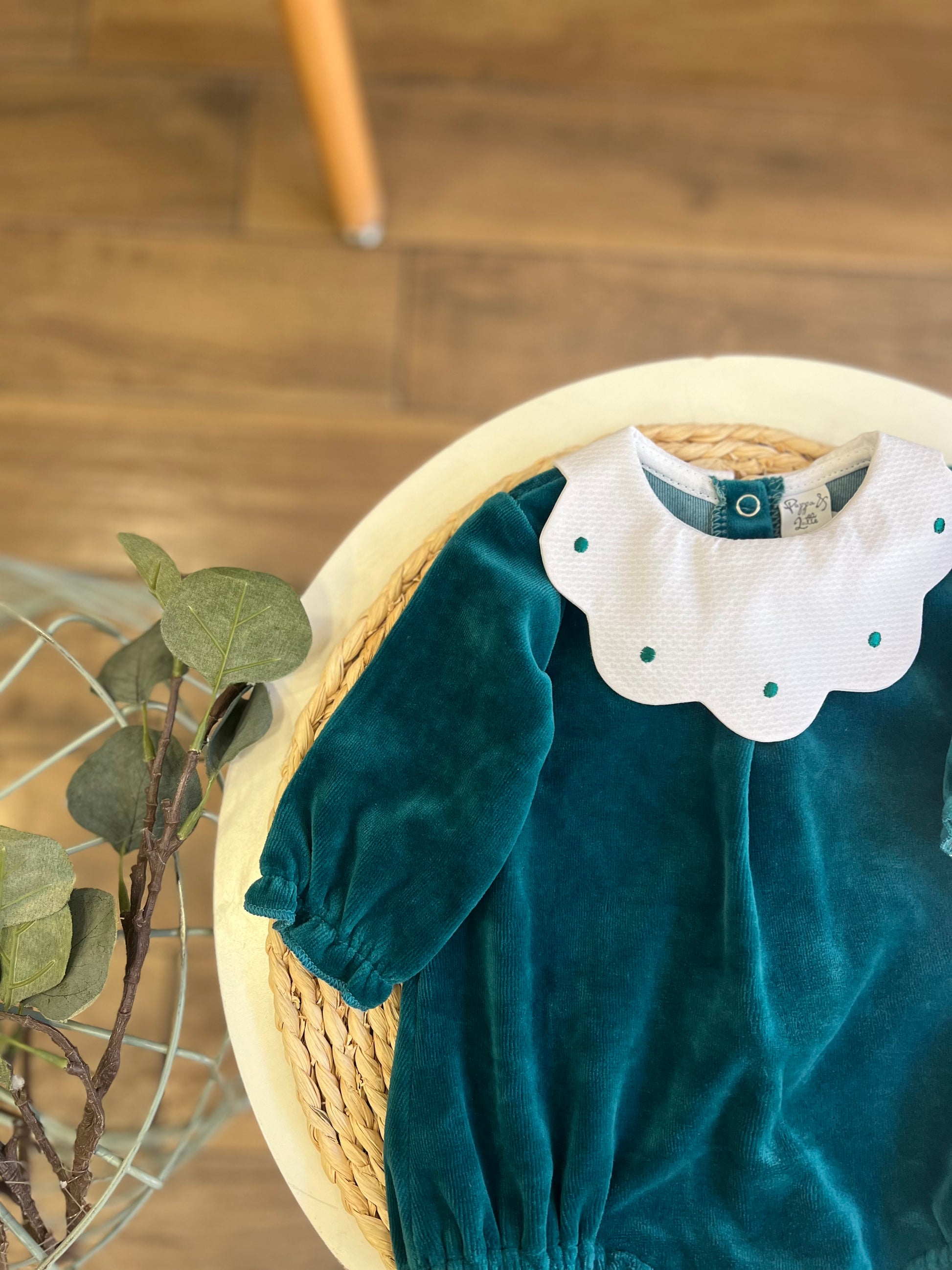 Pagliaccetto in ciniglia con colletto nuvola pois Ottanio